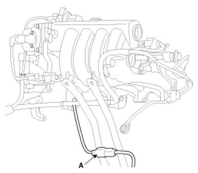 8. Remove the fuel inlet from delivery pipe (A).