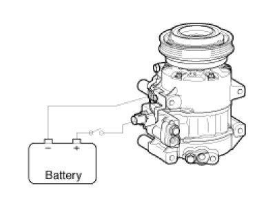 4. Check operation of the magnetic clutch.Connect the compressor side terminals to the battery (+) terminal and the ground battery (-) terminal to the compressor body.