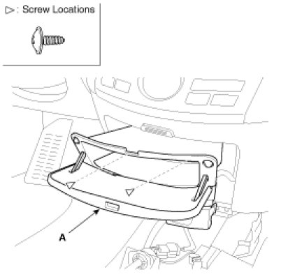 3. After loosening the mounting screw, remove the center facia lower panel(A).