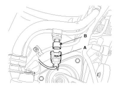 3. Disconnect A/C pressure transducer connector (3P) (A).