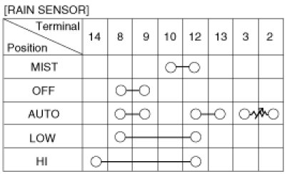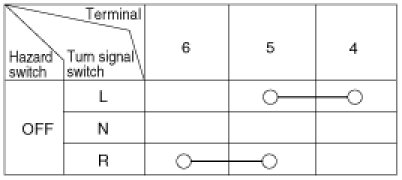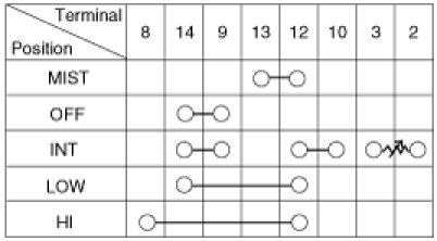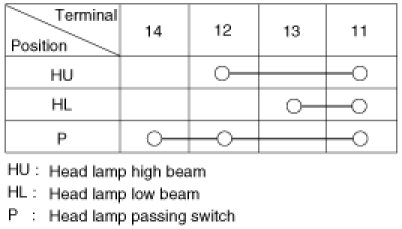 1. With the multi function switch in each position, make sure that continuity exists between the terminals below.