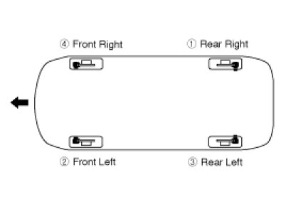 4. Repeat the procedure for each wheel in the sequence shown below until air bubbles no longer appear in the fluid.
