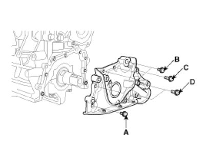 Place a new front case gasket on the cylinder block. Apply engine oil to the lip of the oil pump seal. Then, install the oil pump onto the crankshaft. When the pump is in place, clean any excess grease off the crankshaft and check that the oil seal lip is not distorted.