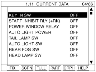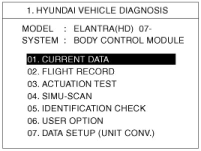 3. Select "Current data", if you will check current data of BCM. It provides power supply status, multi function status, lamp status, door status, lock system status, wiper, auto light status and so on.