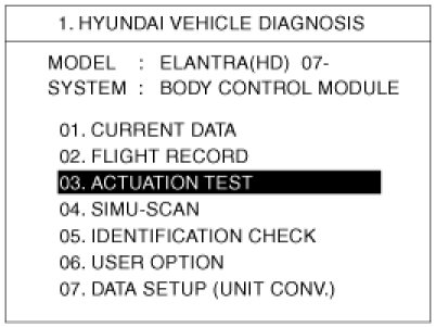 4. If you will check BCM data operation forcefully, select "Actuation test".