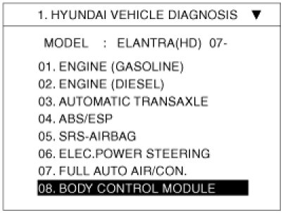 1. Select option "ELANTRA (HD)" and press ENTER.