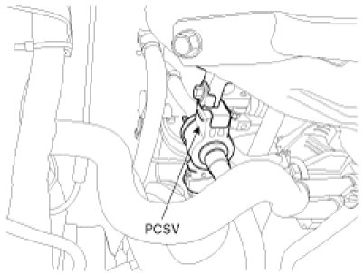 Function And Operation PrinciplePurge Control Solenoid Valve (PCSV) is installed on the surge tank and controls the passage between the canister and the intake manifold. It is a solenoid valve and is open when the PCM grounds the valve control line. When the passage is open (PCSV ON), fuel vapors stored in the canister is transferred to the intake manifold.