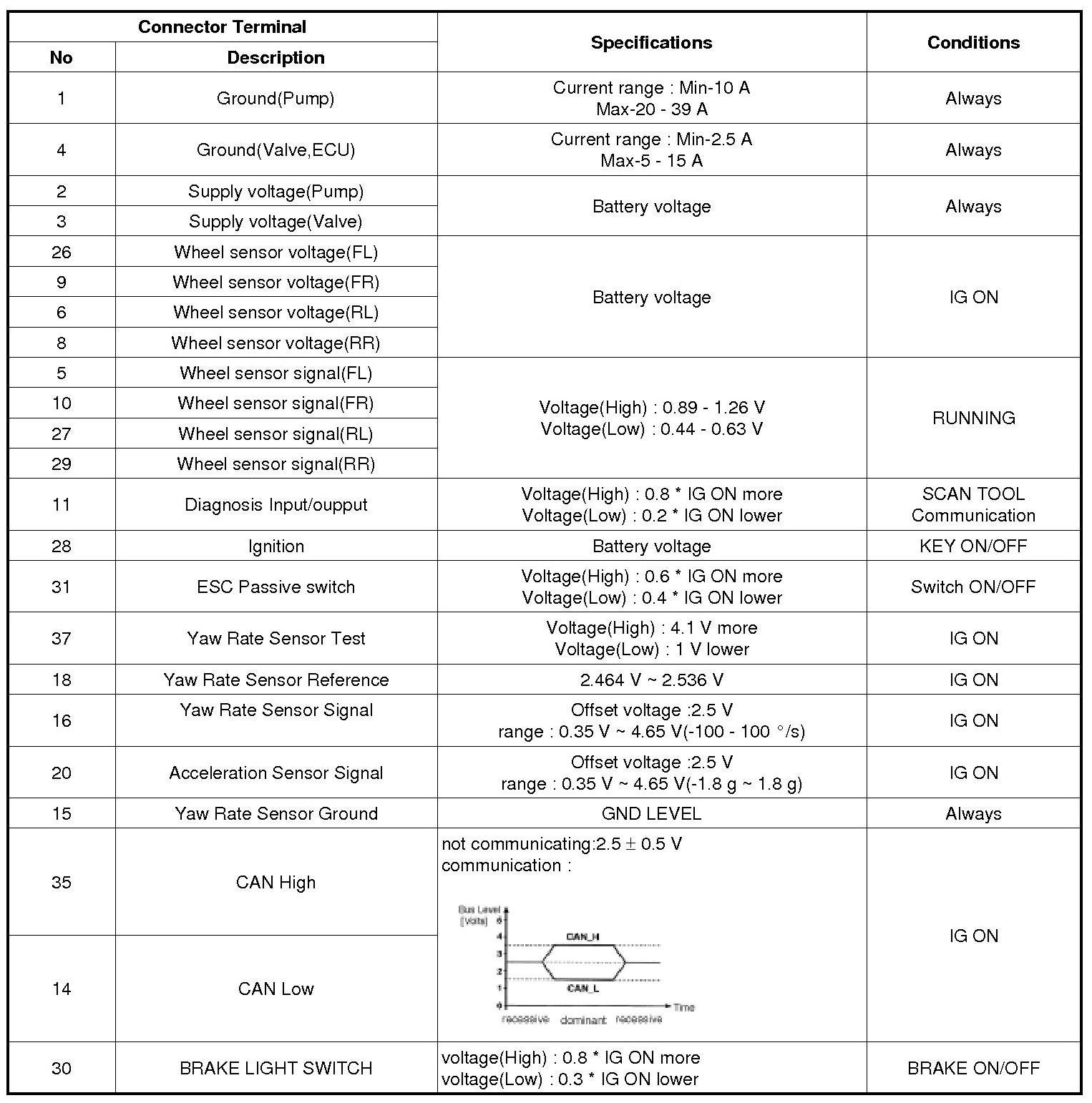 ESC HECU Connector Input / Output