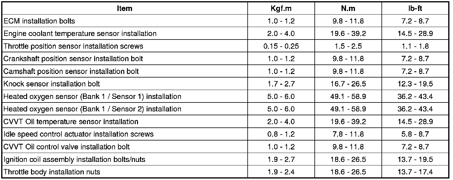 Tightening Torques