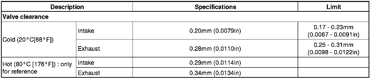 Exhaust 0.25 - 0.31 mm (0.0098 - 0.0122 in.)