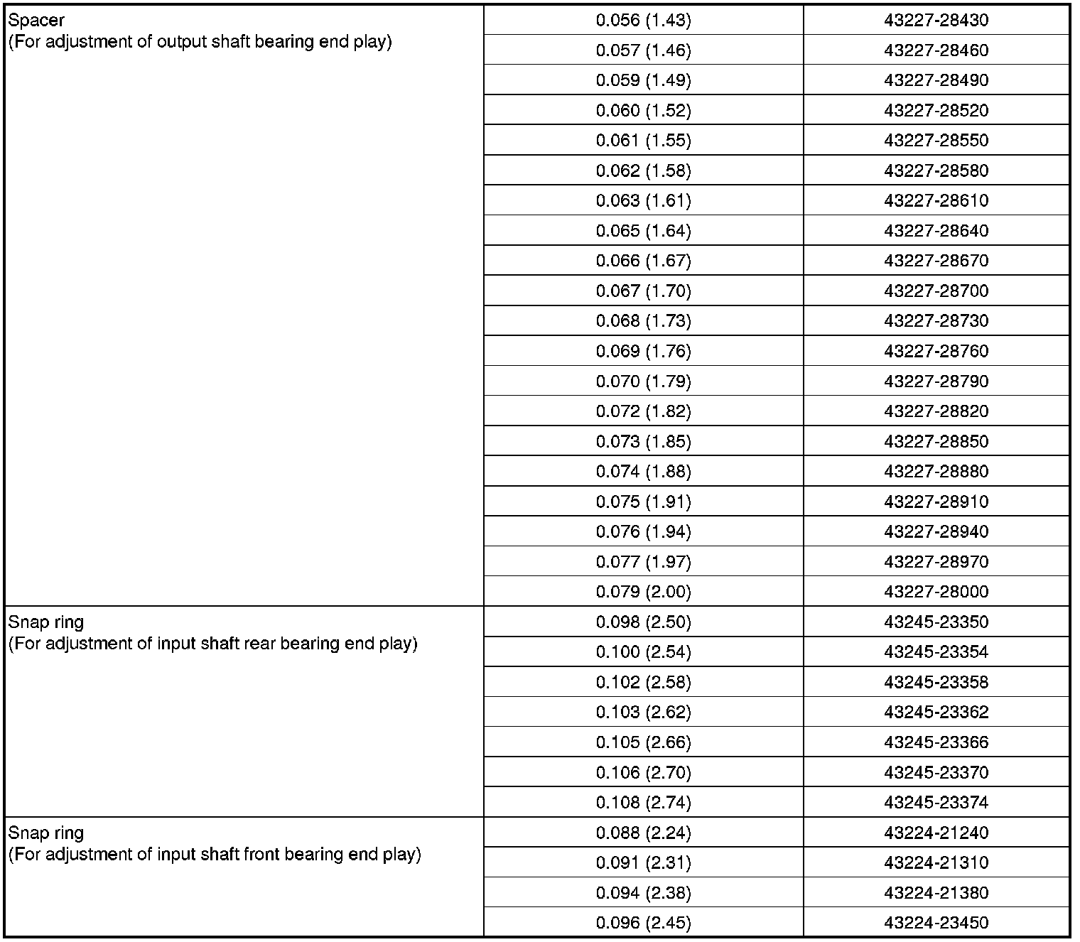 Snap Ring And Spacer For Adjustment