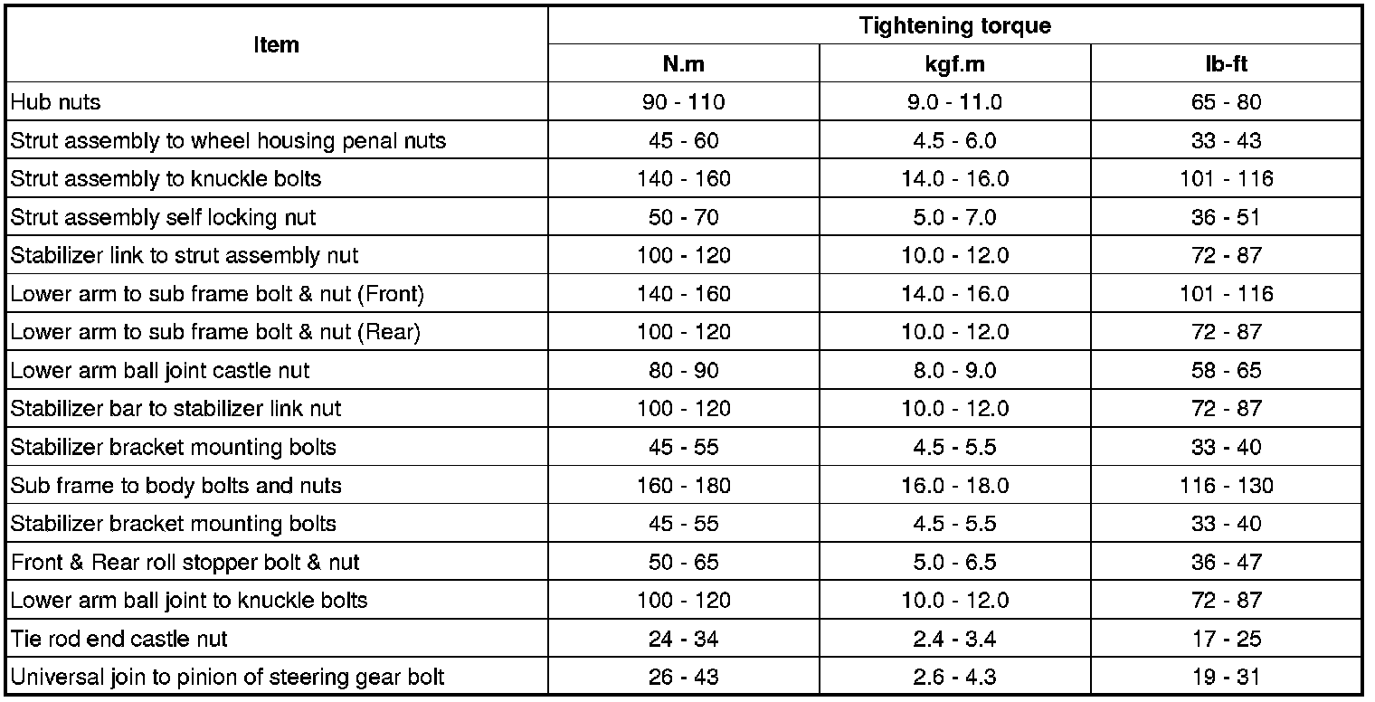 Tightening Torques