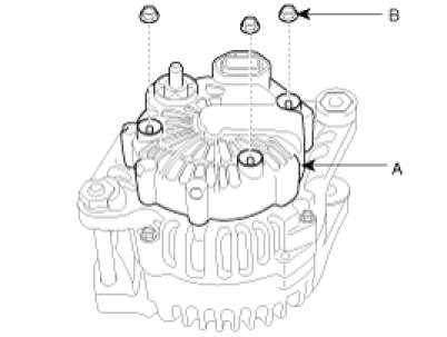 1. Remove the alternator cover(A) after removing three nuts(B).