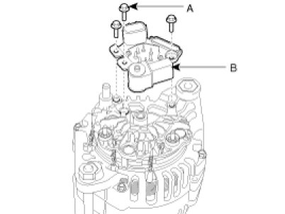 2. Loosen the mounting bolts(A) and disconnect the brush holder assembly(B).