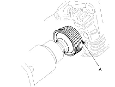 4. Remove the nut, pulley(A) and spacer.