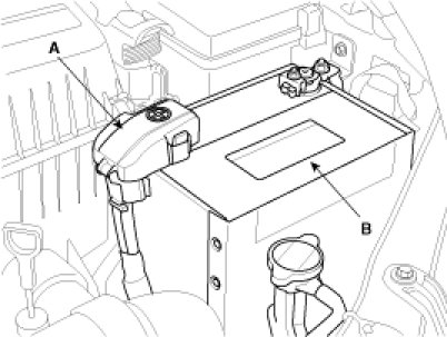 1. Disconnect the battery negative terminal(A) first, then the positive terminal(A).