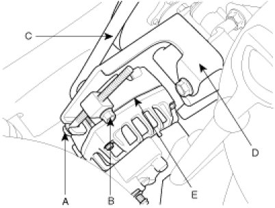 3. Remove the adjusting bolt(A), mounting bolt(B), the alternator belt(C) and the alternator mounting bracket(D).