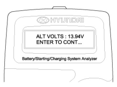 2. ENTER button is pressed, the tester displays the actual voltage of alternator.