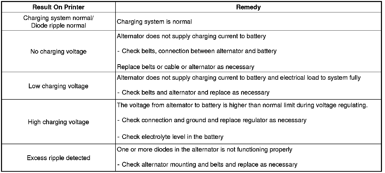 6. The MICRO 570 will detect the amount of ripple from the charging system to the battery. Excessive ripple usually means the stator is damaged or that one or more alternator diodes have failed.
