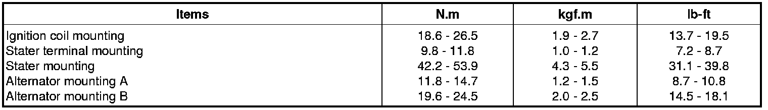 Starting and Charging: Specifications