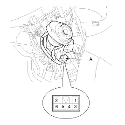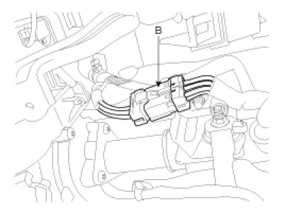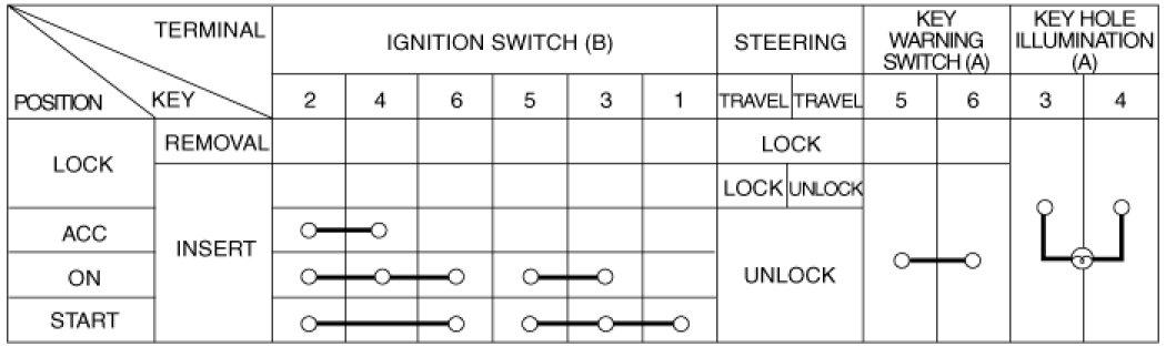 1. Disconnect the ignition switch connector (B) and key warning switch connector (A) from under the steering column.
