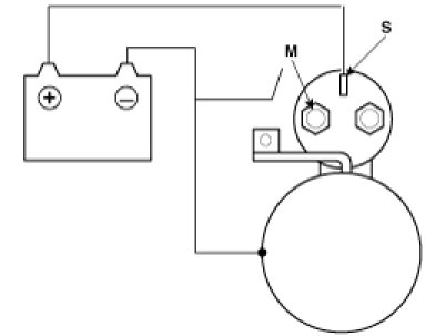 2. Connect a 12V battery between the S-terminal and the M-terminal.