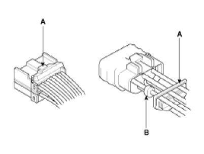 8. Before connecting connectors, make sure the terminals (A) are in place and not bent.