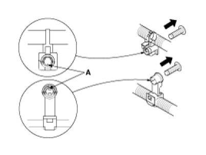 3. Slip pliers (A) under the clip base and through the hole at an angle, and then squeeze the expansion tabs to release the clip.