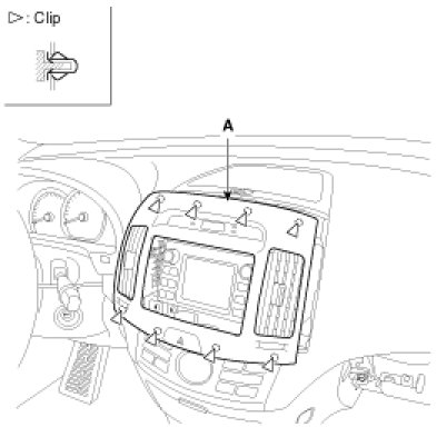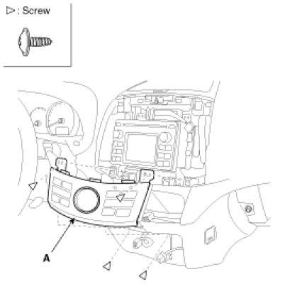 Remove the center facia panel(A). Take care not to damage fixing clips.