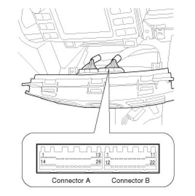 Using an ohmmeter, inspect the continuity between the terminals after removing controller.