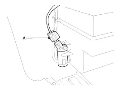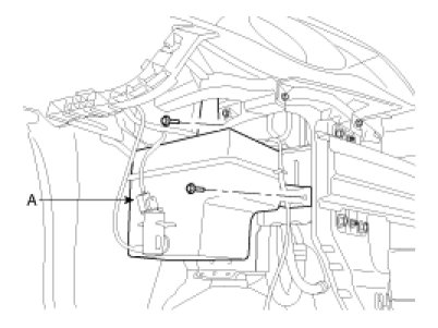 4. Remove the washer reservoir (A) after removing 2 bolts.