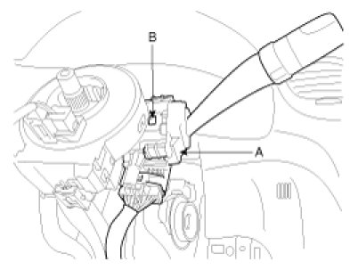 3. Remove the wiper switch (A) after disconnecting the connector with pushing the lock pin (B) and loosening 2 screws.