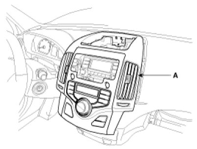 4. After loosening the mounting clips, then remove the center fascia lower tray (A).