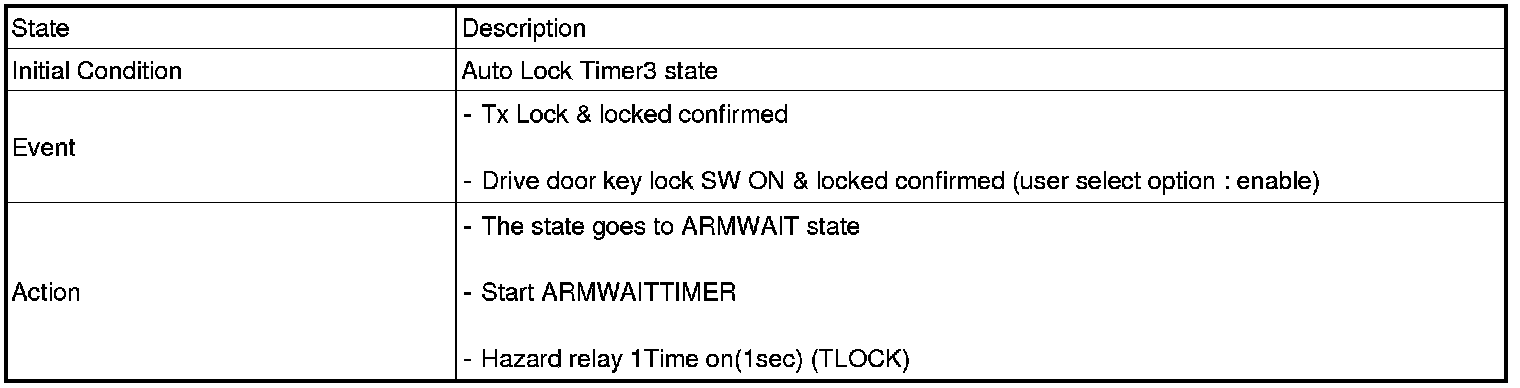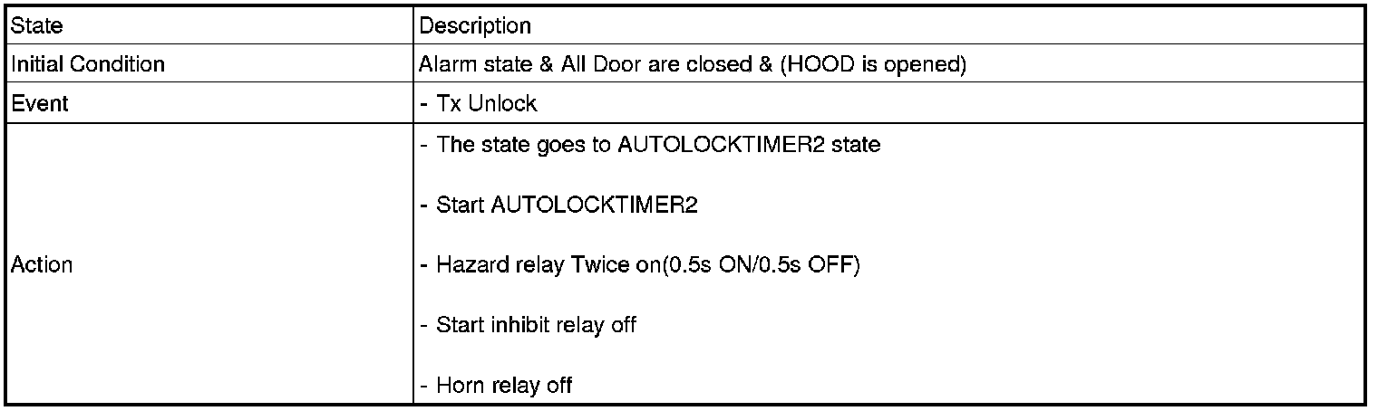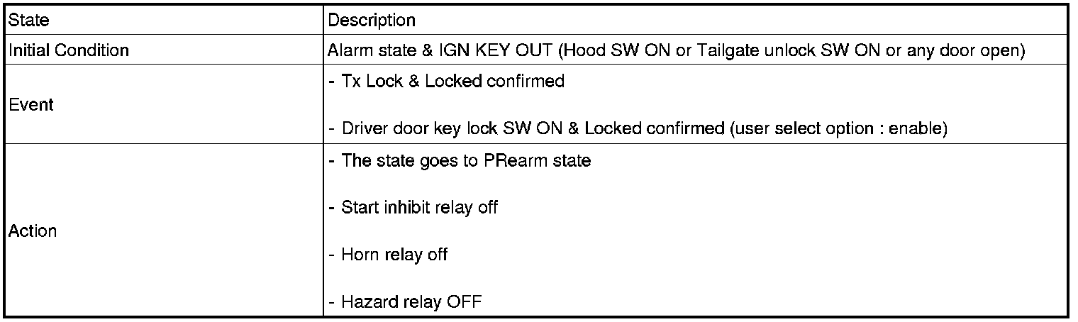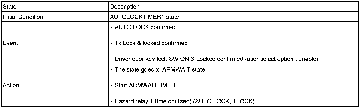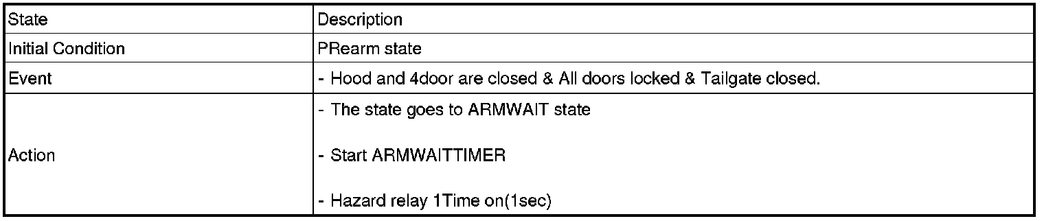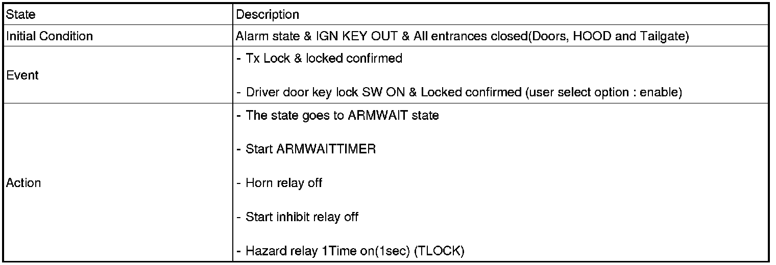 1. HORN OUTPUT is kept pace when operating HAZARD if ARM WAIT condition is maintained by TLOCK within 4sec after entering ARM WAIT by TLOCK.