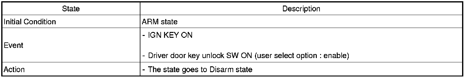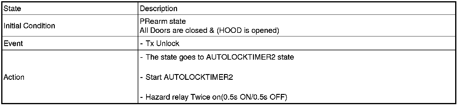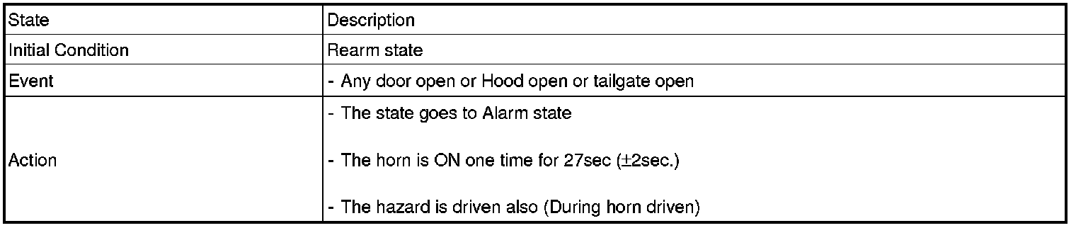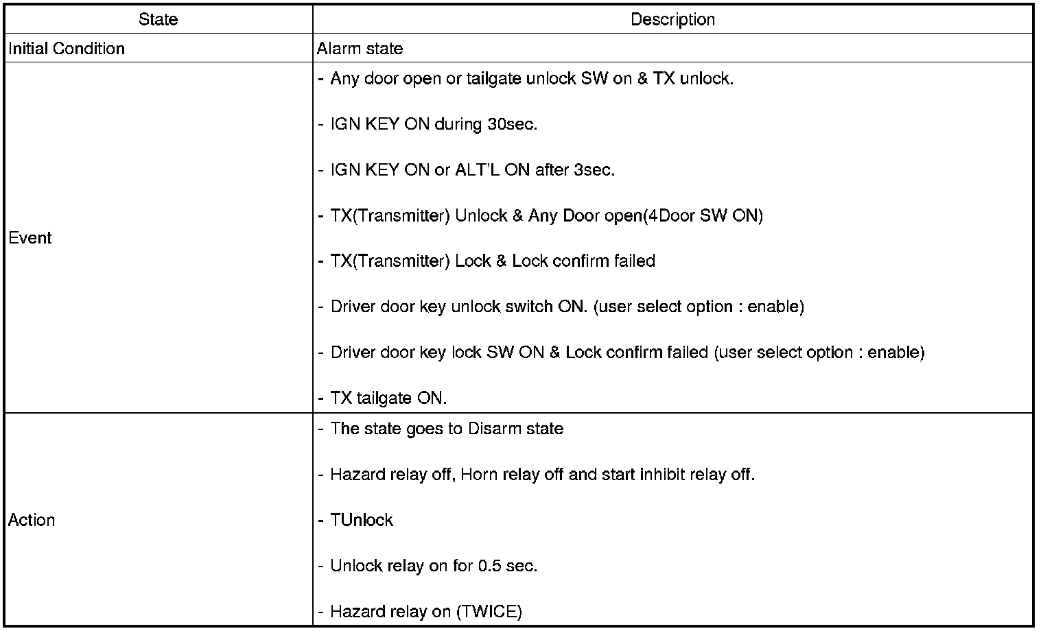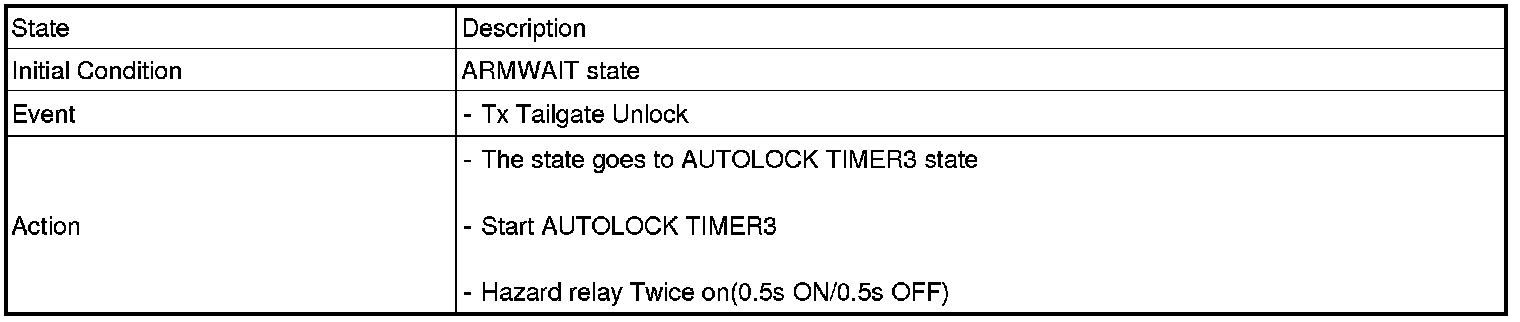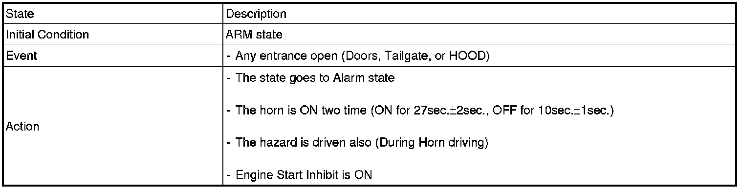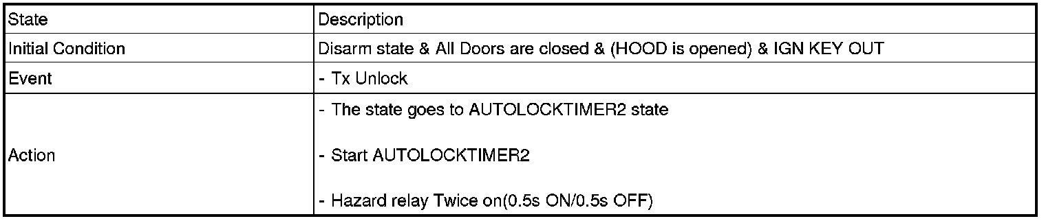 1. HORN OUTPUT is kept pace when operating HAZARD if ARM WAIT condition is maintained by TLOCK within 4sec after entering ARM WAIT by TLOCK.