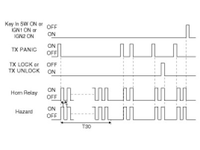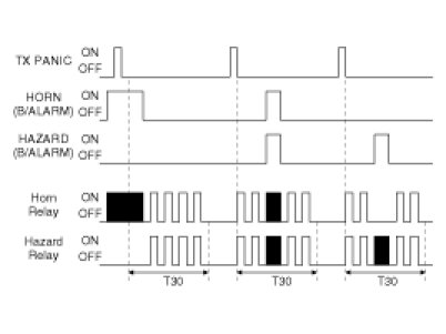 HORN and HAZARD operations by ANTITHEFT function have priority to PANIC ALARM and Horn relay and Hazard relay should be OFF during the break time of 10 sec during the alarm by ANTITHEFT.