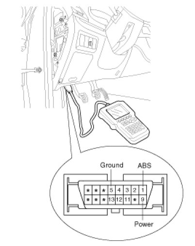 2. Connector the Scan tool to the 16P data link connector located the driver's side kick panel.