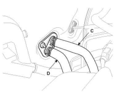 6. Disconnect the inlet (C) and outlet (D) heater hoses from the heater unit.