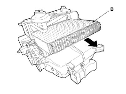 12. Remove the heater core (B) after remove the cover (A).