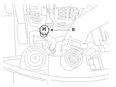 1. Connect an R-134a refrigerant Recovery/Recycling/Charging System (A) to the high-pressure service port (B) as shown, following the equipment manufacturer's instructions.