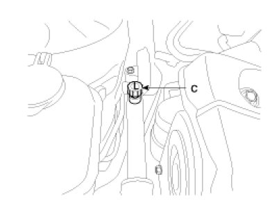 2. Connect an R-134a refrigerant Recovery/Recycling/Charging System (A) to the high-pressure service port (B) and the low-pressure service port (C) as shown, following the equipment manufacturer's instructions.