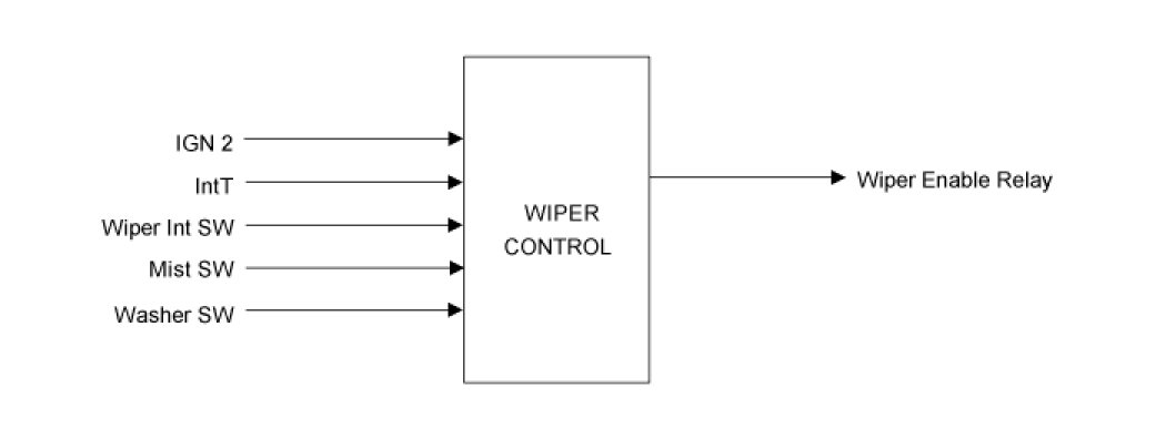 (2) Turn the output of WASHER INTERLOCKING Wiper when Washer SW is turned ON for more than 0.2sec during the operation of INT Wiper. If Washer SW is turned on for less than 0.2sec, turn the output of Wiper Enable Relay once.