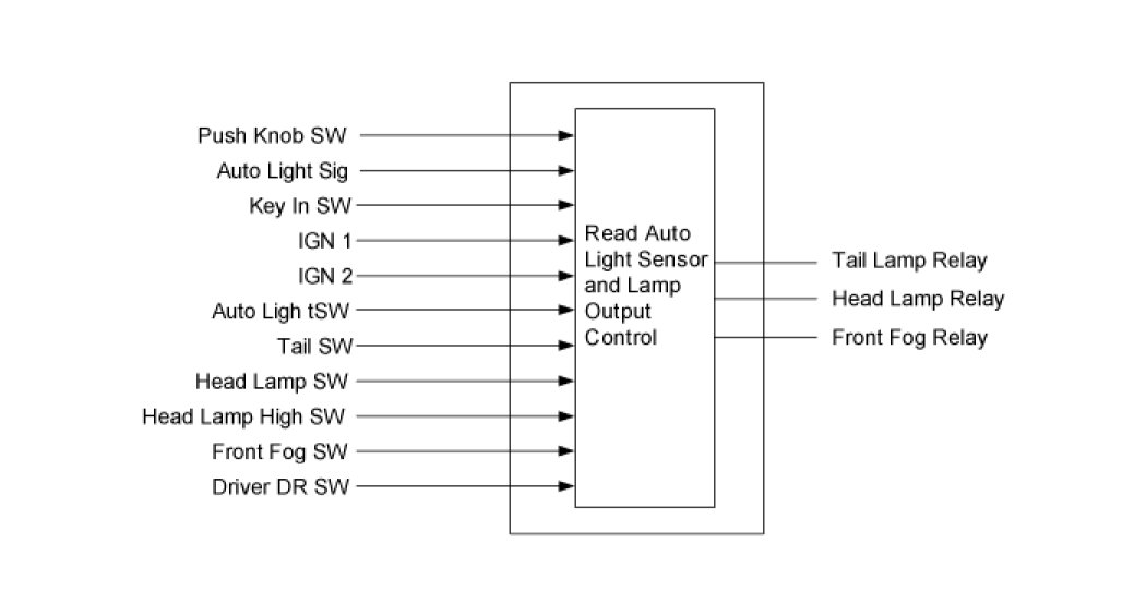 (4) If the value of Auto Light Signal is input value of Tail Lamp ON, turn Tail Lamp Relay ON only and if it is input value of Head Lamp ON, turn Tail Lamp Relay and Head Lamp Relay ON.