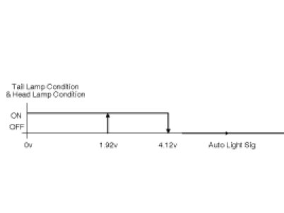 (1) If the service voltage of Auto Light SENSOR is less than 4v or more than 6v at the status of IGN1 ON, it means it has defects. Always turn Tail Lamp Relay and Head Lamp Relay ON regardless of the value of SENSOR when turning Auto Light SW ON with trouble. The FILTERING time for defects and recovery of the service voltage is 300msec each.