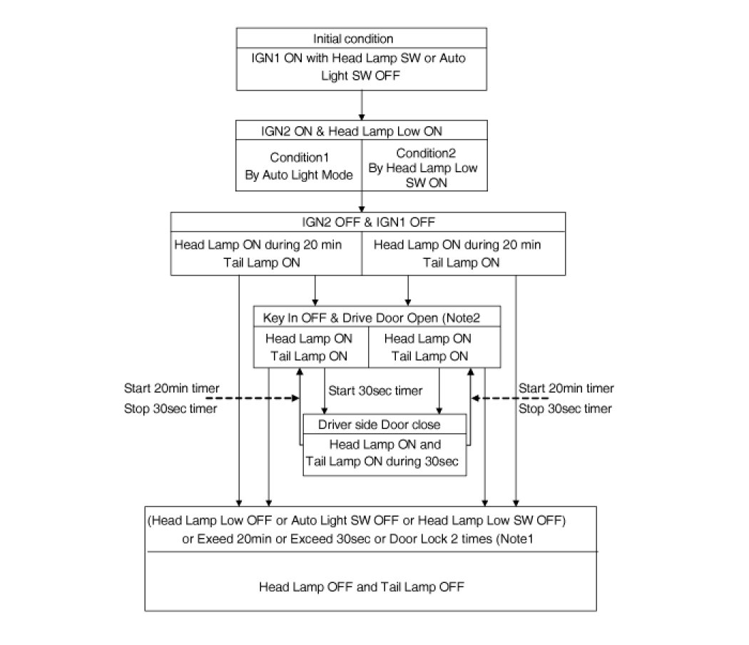 During active the Escort function(counting 30sec), if Driver door is re-opened, re-start 20min counter and if Driver door is re-close, re-start 30sec counter.