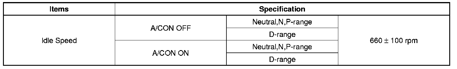Idle Speed: Specifications