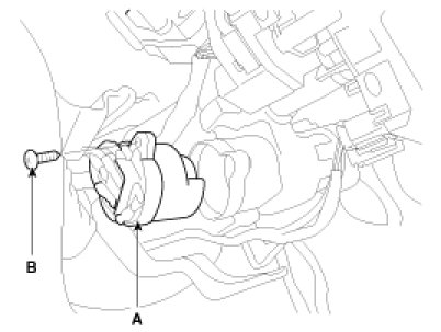 3. Remove the ignition switch (A) after loosening the screw (B) with IG ON and disconnecting the 6P connector (C).