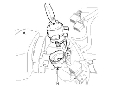 5. If it is necessary to remove the key lock cylinder (A), Remove the key lock cylinder after pushing lock pin (B) with key ACC.