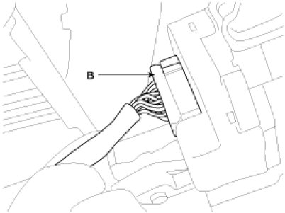 1. Disconnect the ignition switch connector (B) and key warning switch connector (A) from under the steering column.