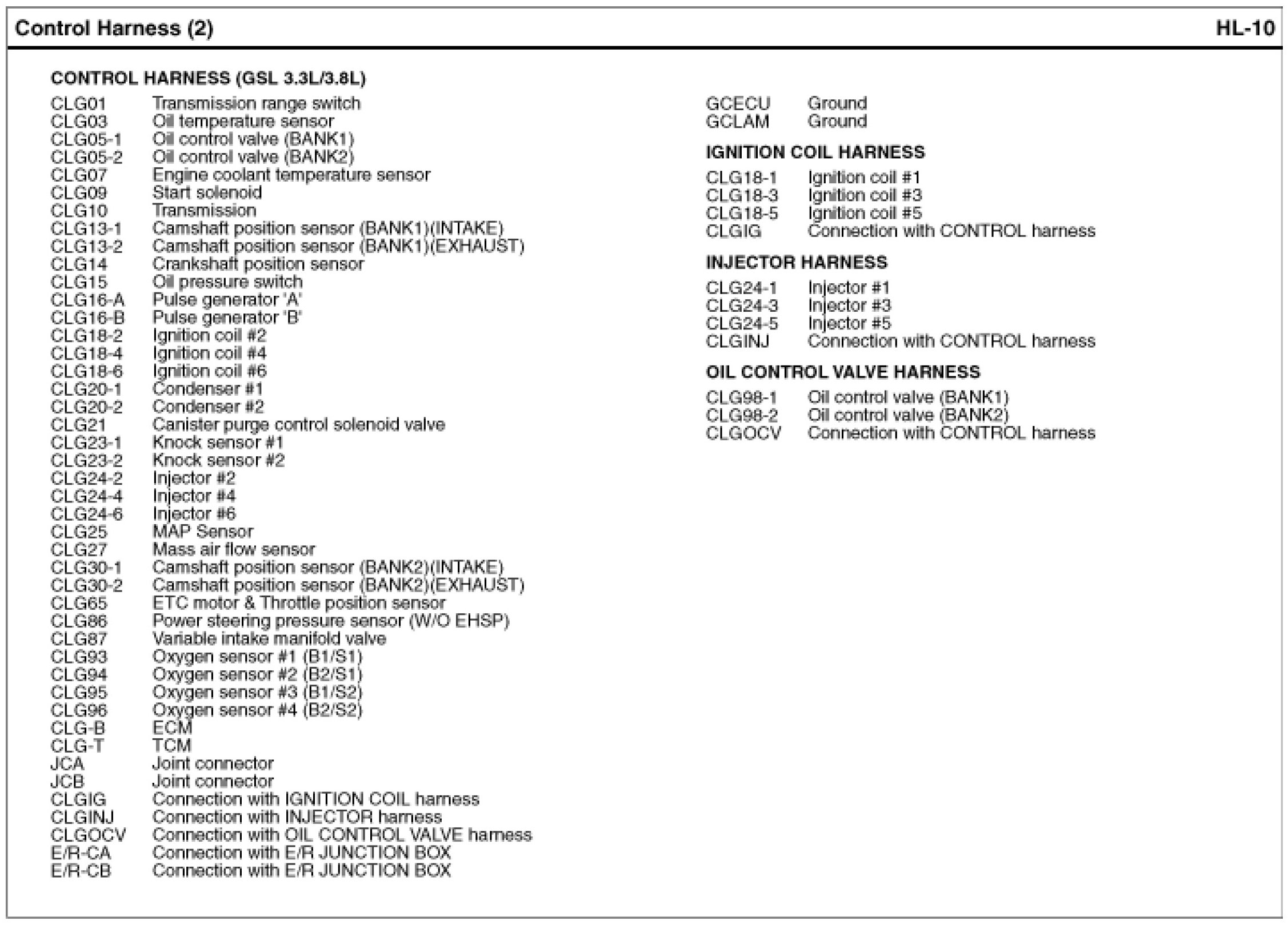 Control Harness Index: